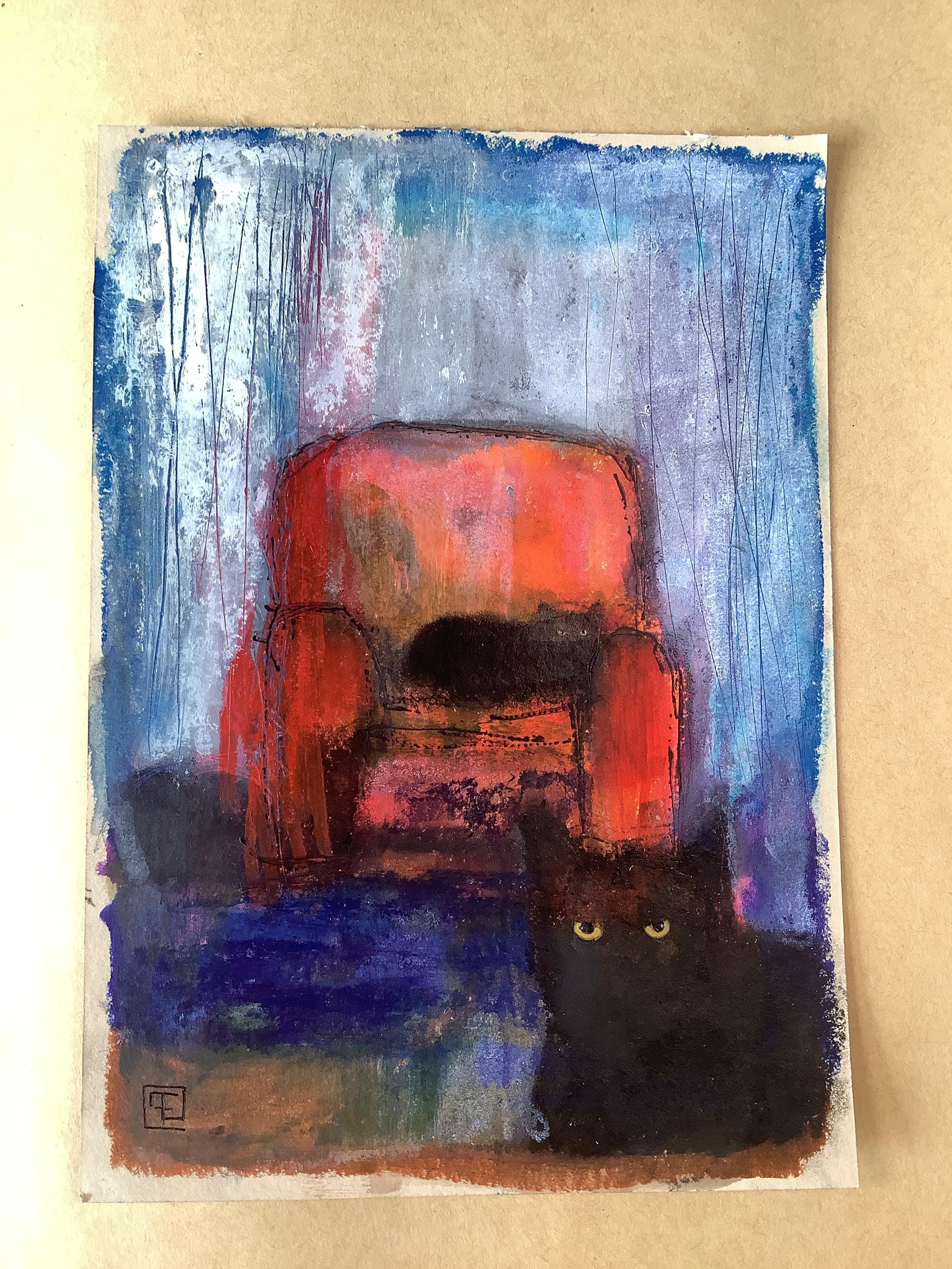 Abstract painting, black cats.