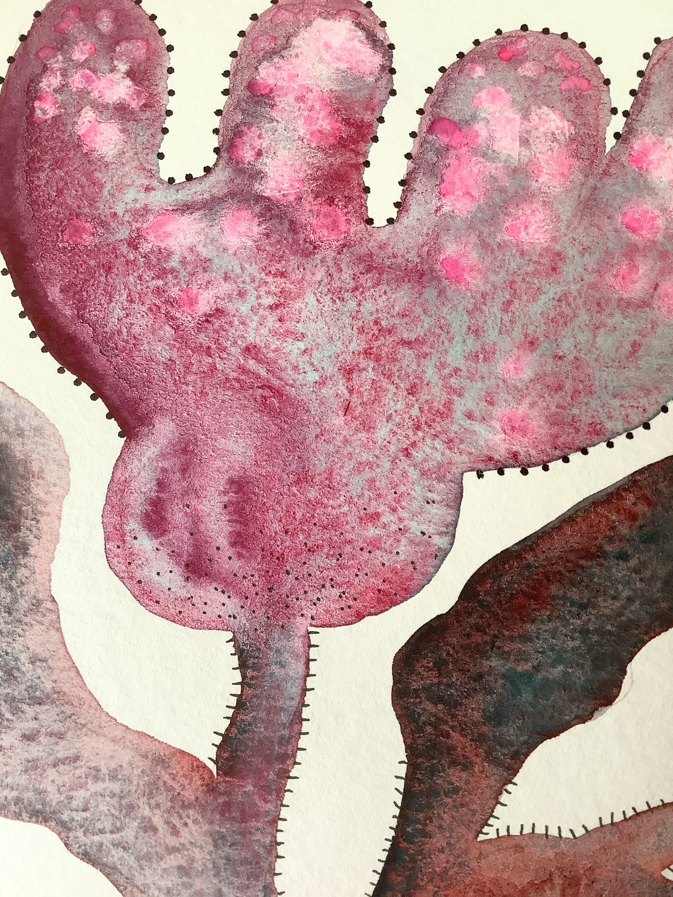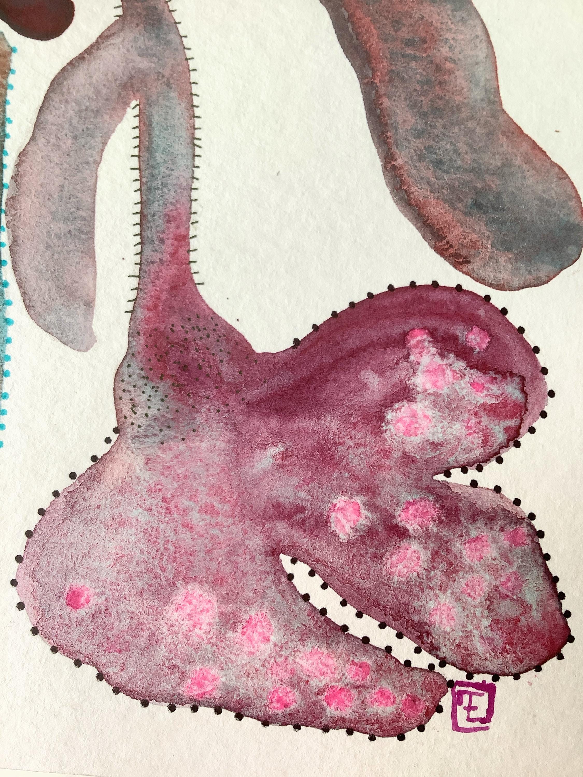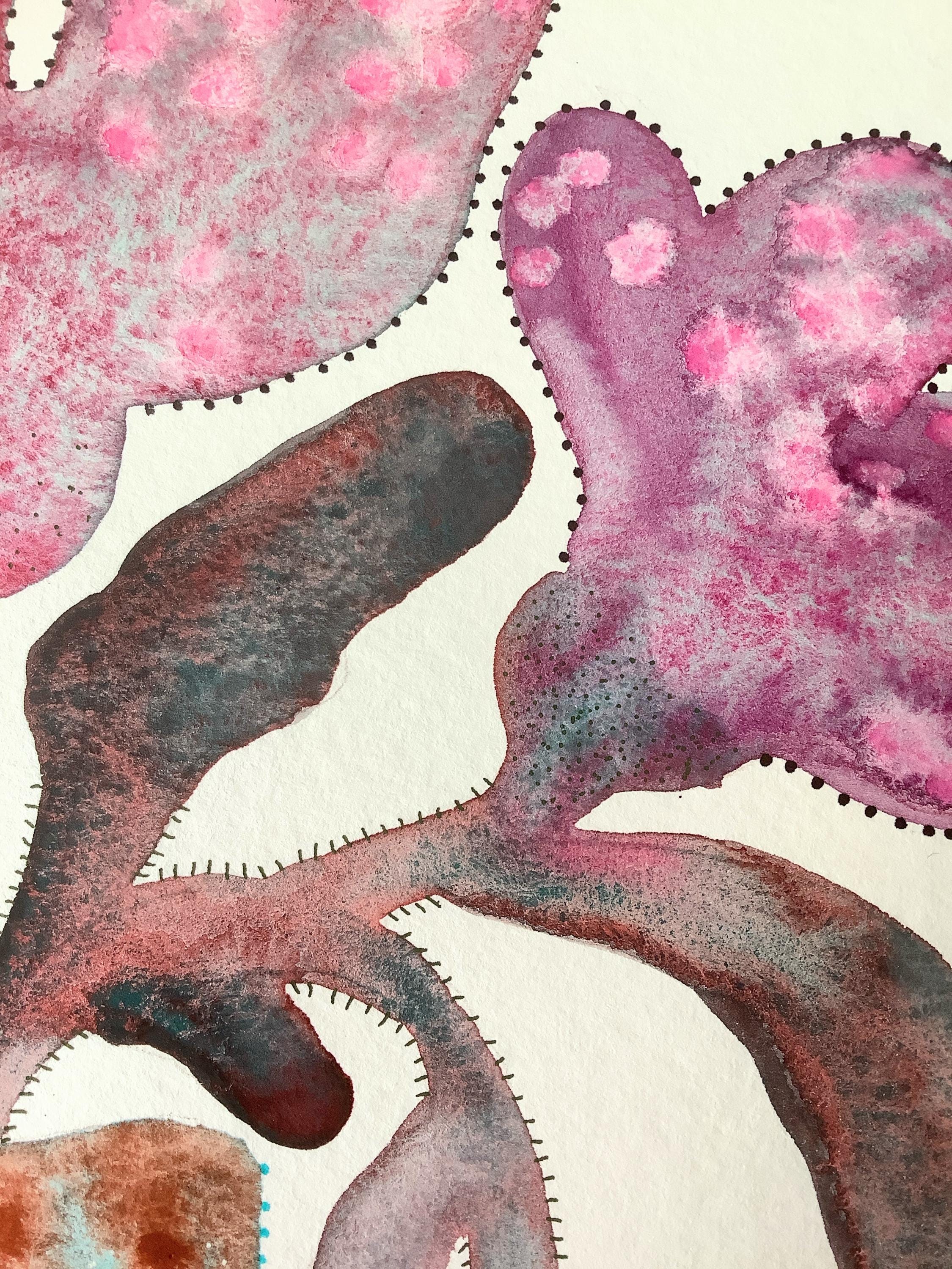 "LOOSE FLOWERS" is an original watercolor painting that depicts abstract flowers in a vase. The artist has used delicate watercolor techniques, with details added in gouache and ink. The combination of mediums creates a layered effect, with the fluidity of watercolor contrasting beautifully with the more opaque gouache and the precision of ink.